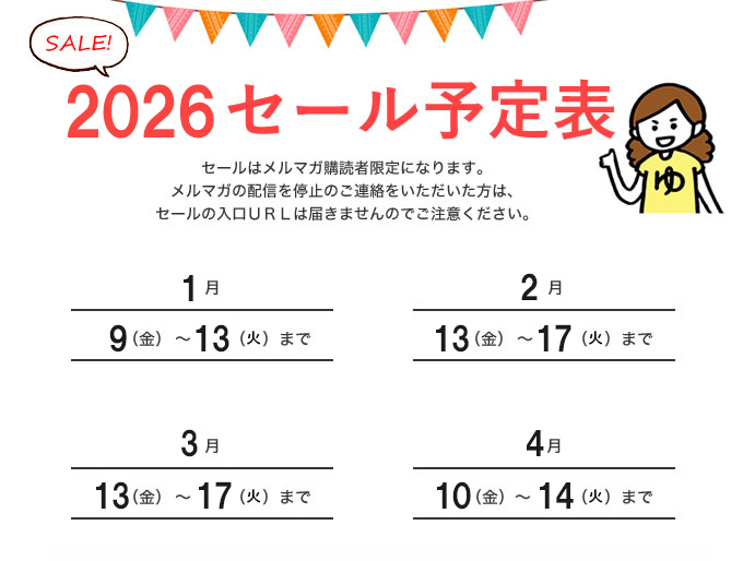 セールの日付は予告なく変更する場合がある事を御了承下さい。